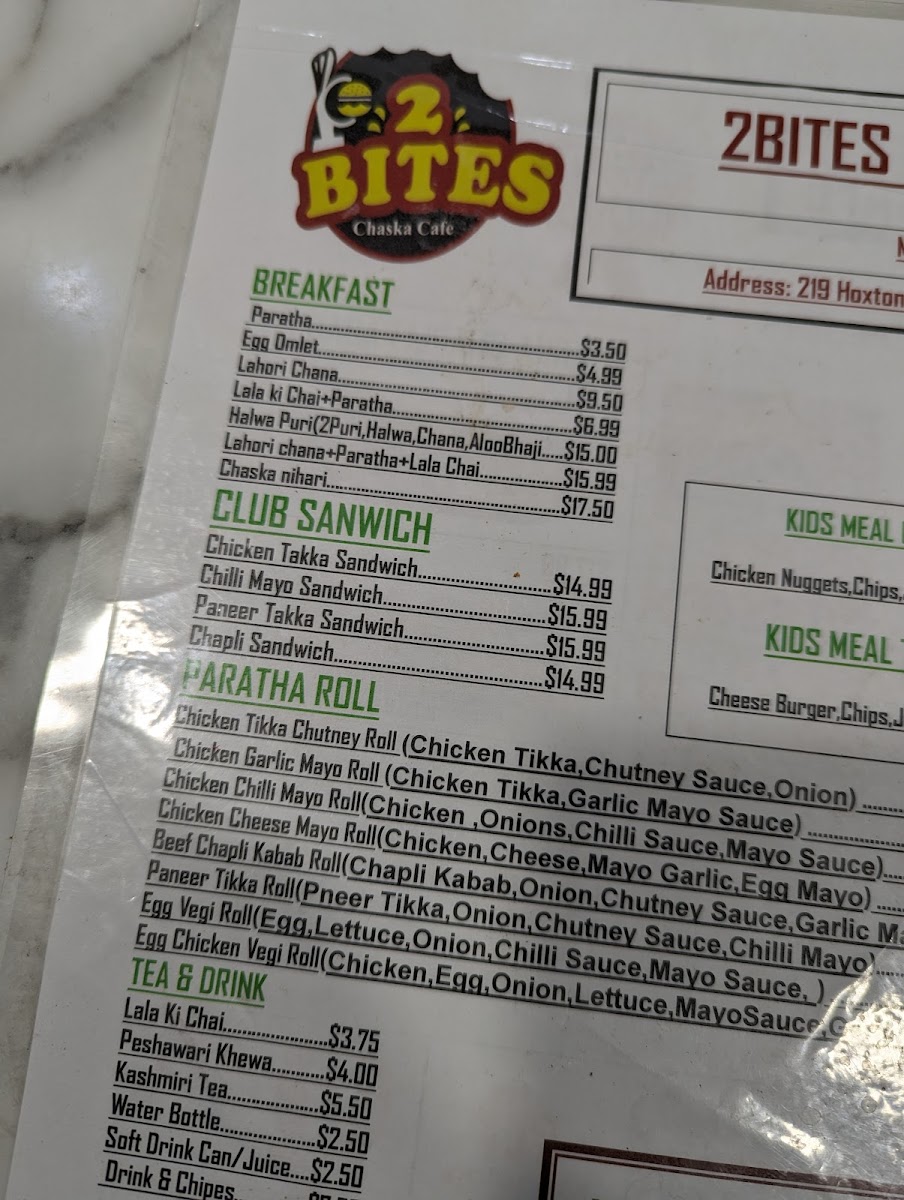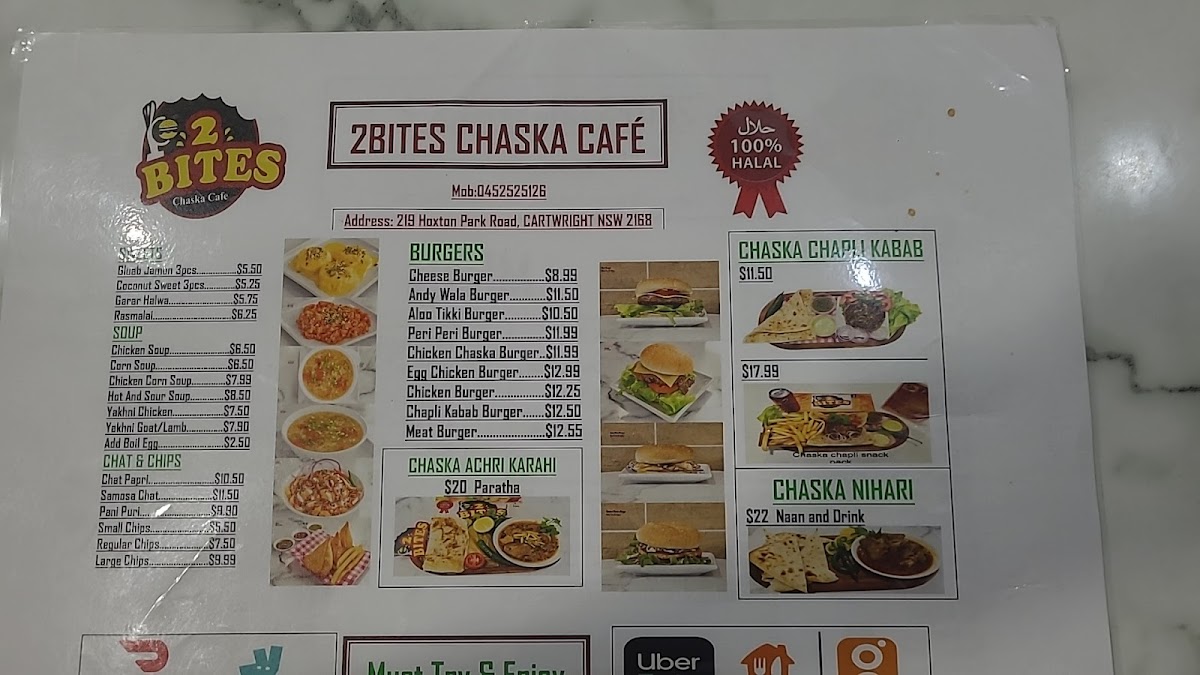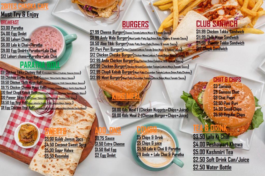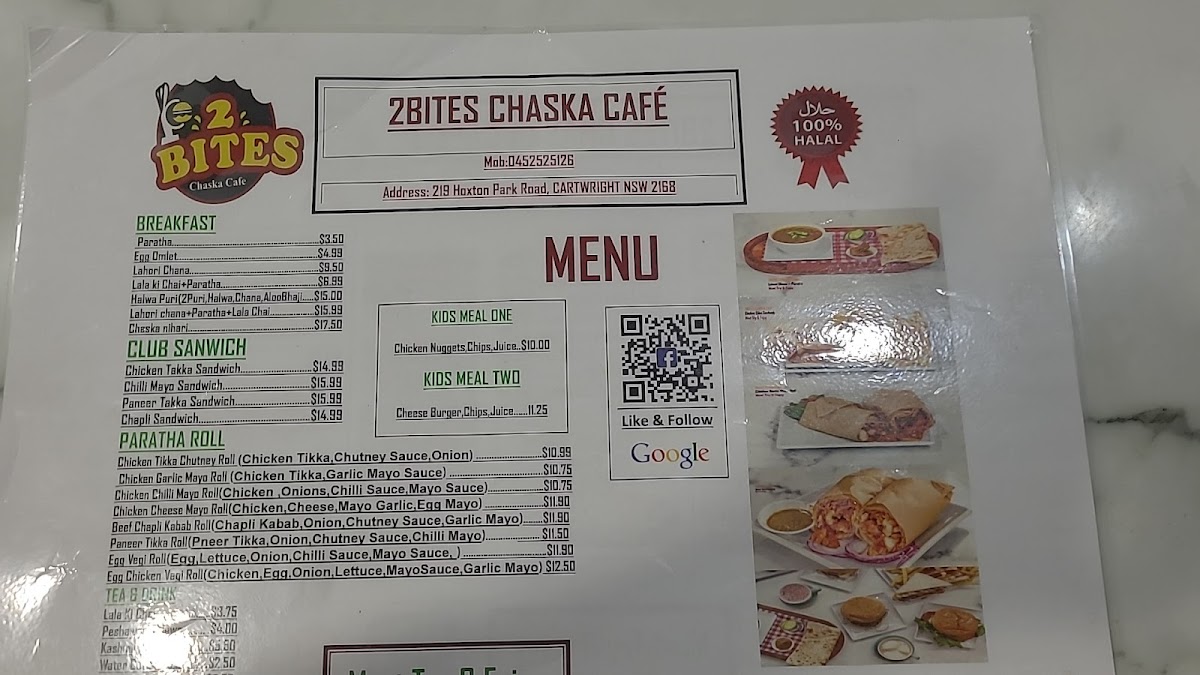 2Bites Chaska Cafe offers a delightful mix of traditional and comforting dishes. For breakfast or a light meal, Halwa Pori is a popular choice, available daily for both Sehri and Aftari. If you're in the mood for something savory, the Chai Paratha provides a perfect accompaniment to a warm cup of chai. Another must-try is the Lahore Chana, which pairs wonderfully with a freshly baked Naan. The menu at 2Bites Chaska Cafe offers an inviting range of flavors, perfect for those craving home-style meals with a touch of authentic Pakistani and Indian influence. Whether you're stopping by for a quick snack or a filling meal, the cafe’s menu has something satisfying to offer.